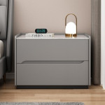 Tixpra 모던 협탁 천연감성 나파 가죽 커버 고급 원목 서랍 무소음 레일 수납장, 1개, 짙은 회색40*40*48 > 문구/가구
