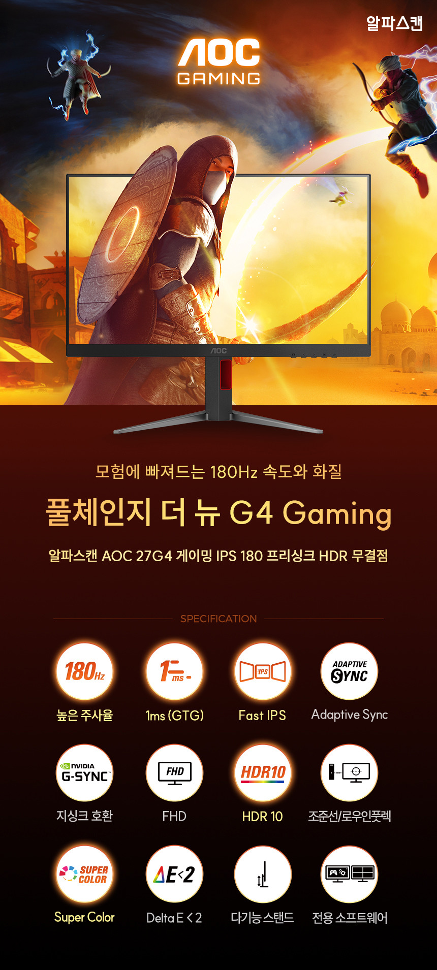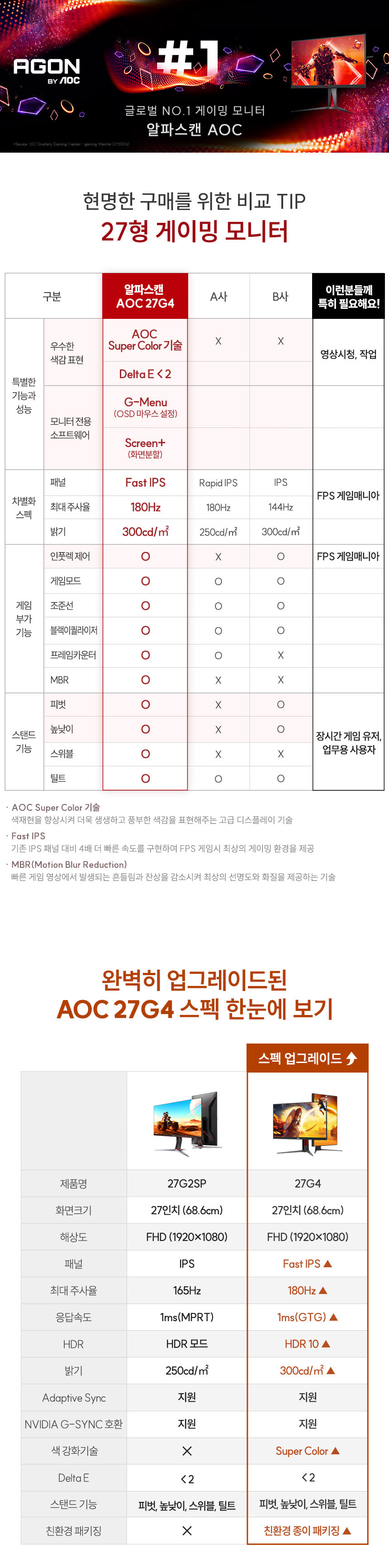 게이밍 모니터 추천 180Hz 가성비 굿 27인치 알파스캔 AOC 27G4
