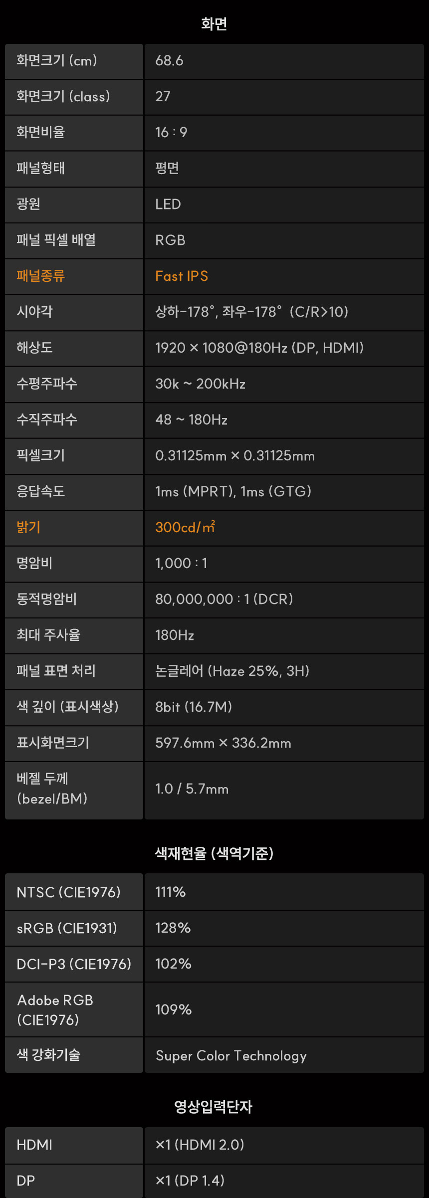 Fast IPS는 IPS 패널 대비 4배 더 빠른 속도를 제공하며