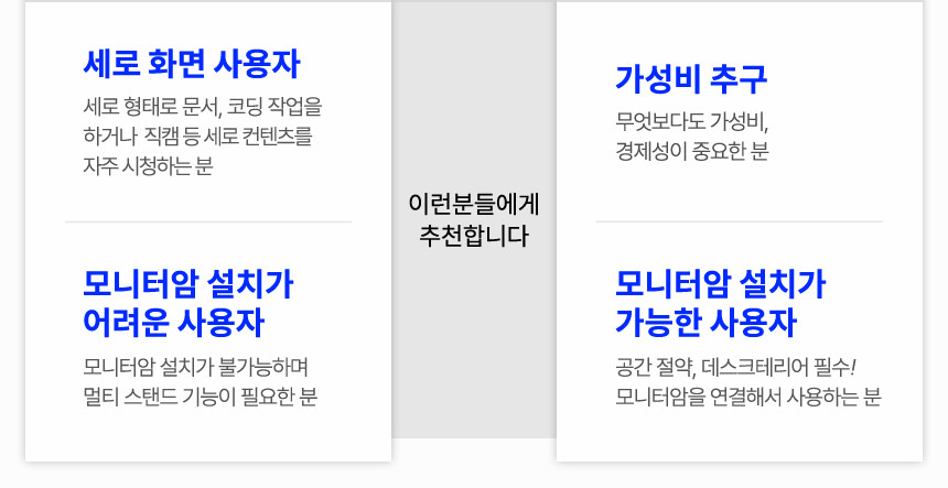 공간 제약 없이 화면의 높이·각도 조절이 가능하여