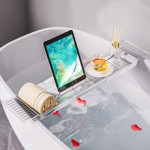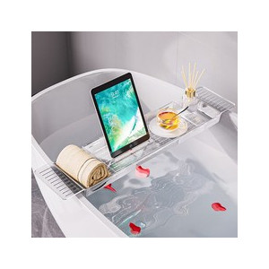 • 투명 아크릴 길이조절 욕조 트레이 거치대 반신욕 테이블 받침대